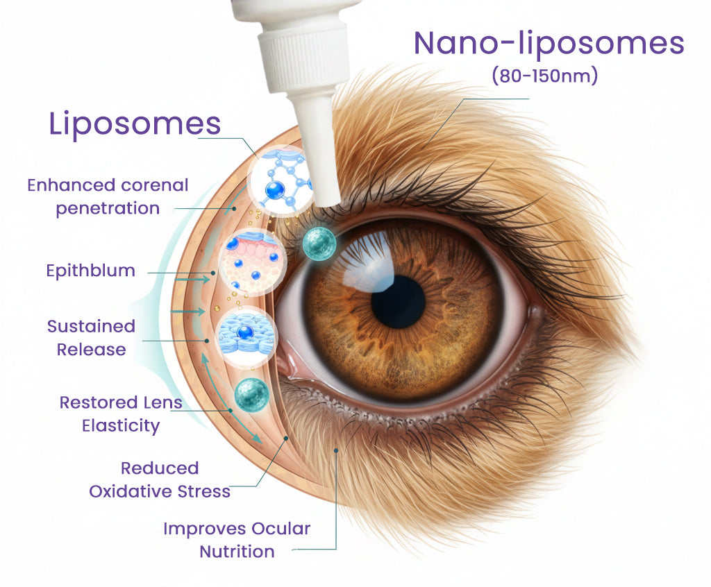 Our nano-liposomes mimic natural cell membranes. allowing them to fuse with the cornea and deliver active ingredients deeper into the eye.