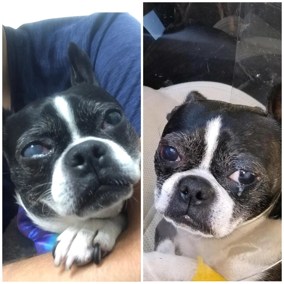 “A miracle for Cooper's cataracts. My senior dog Cooper began developing cataracts and struggled to navigate around the house. After trying BBOJI® for three weeks. he stopped bumping into furniture and found his favorite toy again! Even our vet noticed improvement in the cloudiness.”